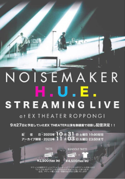 9/27に予定していた「H.U.E.TOUR」 EX THEATER公演を「NOISEMAKER H.U.E. STREAMING LIVE at EX THEATER ROPPONGI」として無観客で収録配信をした。