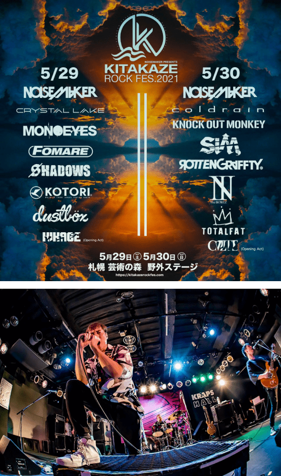 昨年中止となった主催野外フェス「KITAKAZE ROCK FES.2021」の開催を発表。MONOEYES、ROTTENGRAFFTY、coldrainなど強力なメンツを揃え今年より2daysでの開催予定も新型コロナウイルス感染拡大、緊急事態宣言に伴い、2度目の中止となった。