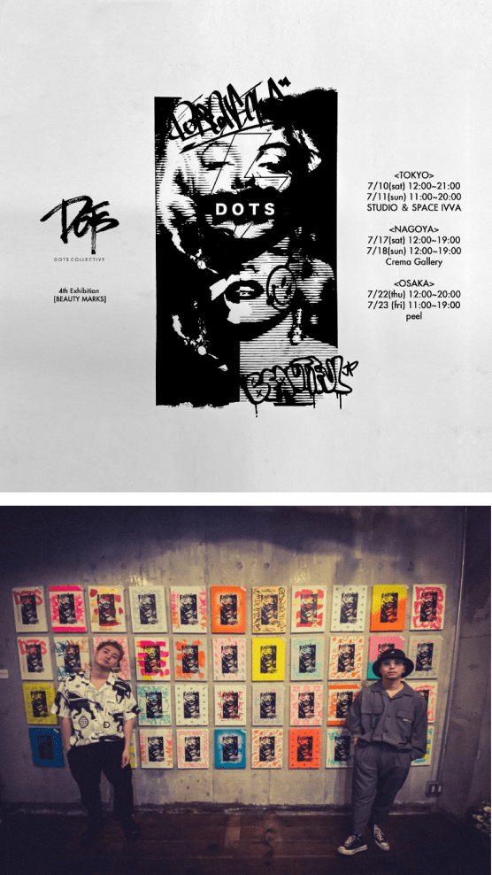 アートプロジェクトDOTS COLLECTIVEによる4th Exhibition「BEAUTY MARKS」を東名阪にて入場無料で開催。前回に引き続き開演前から行列ができるほど多くのDOTS COLLECTIVEを愛するファンが集まった。