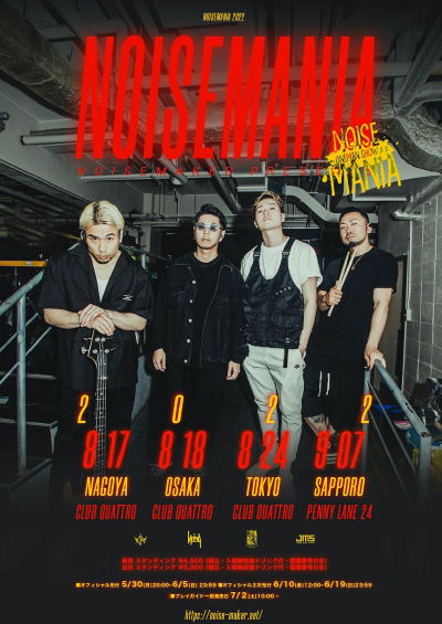 「NOISEMANIA 2022」を東名阪札で開催。今回は全箇所にサポートアクトとして同郷出身バンドであるHIKAGEが参加。東名阪では発表から即SOLDOUT。最後は地元北海道で締めるNOISEMAKERらしいツアーとなった。