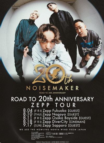 今年で結成20周年となるNOISEMAKERキャリア初のZEPPTOURを開催。各地強力なゲストを招き(東京・ZEPP DiverCityはワンマン公演)2ヶ月かけて公演予定。